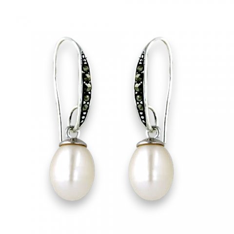 Marcasite Earring Marcasite Fish Wire with 8-9mm Fresh Water Pearl
