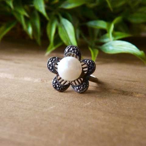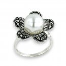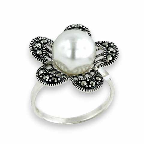 Marcasite Ring 10mm Shall Peral 5 Marcasite Pave Petal