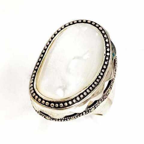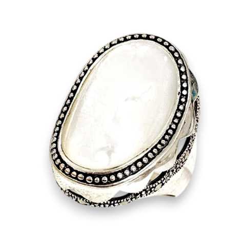 Marcasite Ring 21X14mm Mother of Pearl Oval Marcasite on Side