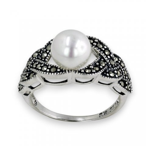 Marcasite Ring 8mm Shell Peral Center 3 Layers Braded Eac