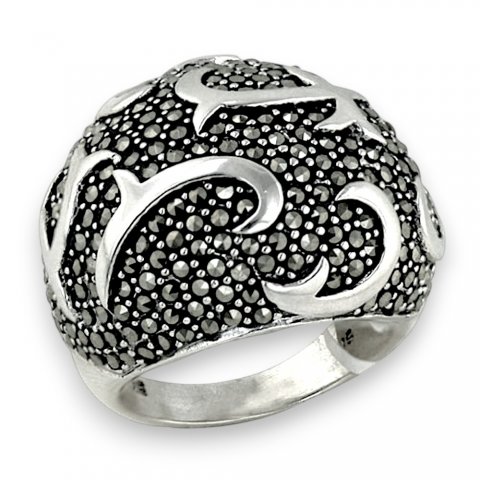 Marcasite Ring Dome Marcasite 22mm Width Wavy Plain