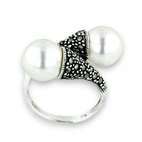 Marcasite Ring Oppositive 10mm White Faux Pearl