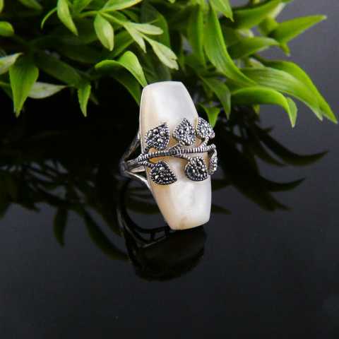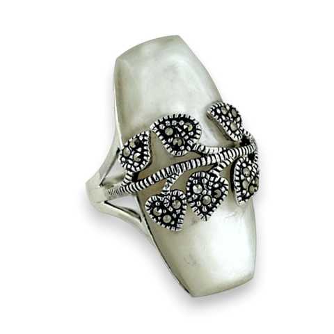 Marcasite Ring with Mother of Pearl 15X34mm with Marcasite Leaves