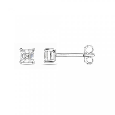 Sterling Silver Earring 4 mmx4 mm Princess Cut Clear Cubic Zirconia Stud