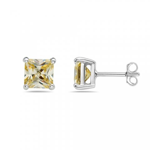 Sterling Silver Earring Canary Yellow Cubic Zirconia Square Princess Cut 7M