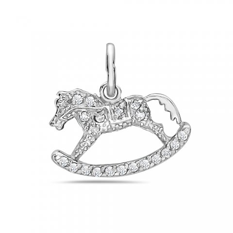 Sterling Silver Pendant Clear Cubic Zirconia Horse--Rhodium Plating/Nickle Free--