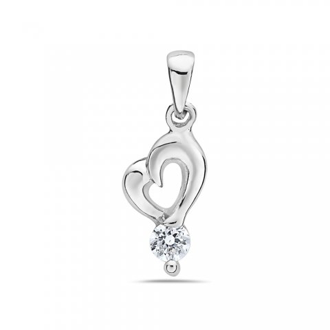 Sterling Silver Pendant Open Silver Aside Heart with Clear Cubic Zirconia Bottom Cir