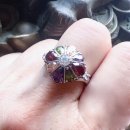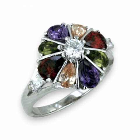 Sterling Silver Ring 22mm Diamond Shape Flower with Multicolor Color