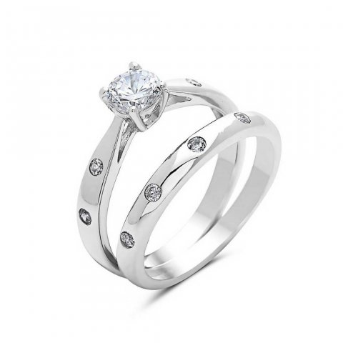 Sterling Silver Ring 5.00mm Cubic Zirconia Prong Setting Set Ring