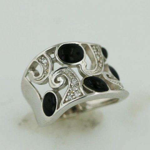 Sterling Silver Ring 5 Oval Onyx Clear Cubic Zirconia
