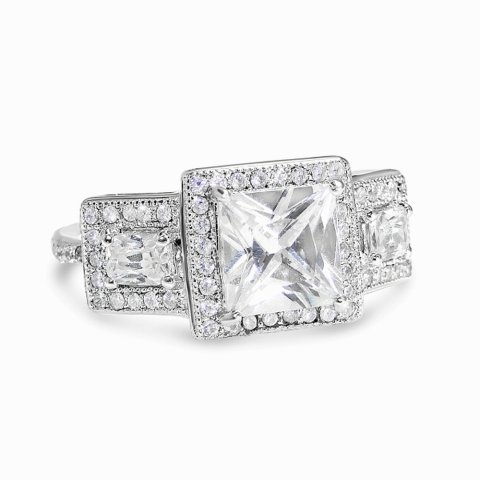 Sterling Silver Ring Micropave Clear Cubic Zirconia Square
