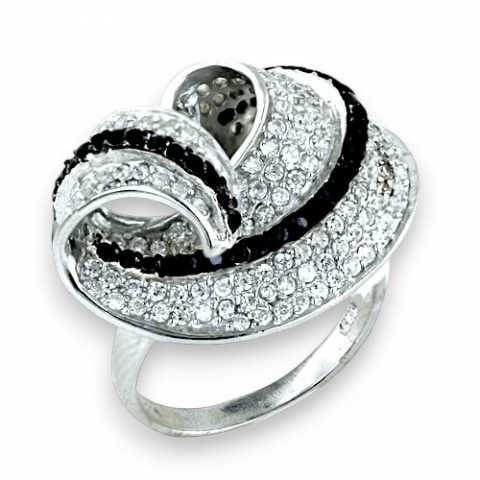 Sterling Silver Ring Rope Around with Clear and Black Cubic Zirconia