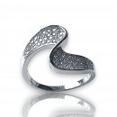 Sterling Silver Ring Wave Design with Clear Cubic Zirconia
